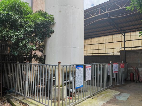 浙江超億消防裝備有限公司老廠區(qū)在干粉滅火器筒體焊接生產(chǎn)加工中涉及使用二氧化碳[壓縮的]和氬[壓縮的],共設(shè)置1臺10m³液氬儲罐和4臺175L二氧化碳焊接絕熱氣瓶,分別經(jīng)空溫汽化器氣化和自動混配后通過無縫鋼管管道至車間焊接點(diǎn)。另外在生產(chǎn)車間干粉滅火器筒體補(bǔ)焊,設(shè)備檢維修等涉及使用氬氣氣瓶、氧氣氣瓶和乙炔氣瓶,屬于危險化學(xué)品使用單位,根據(jù)《危險化學(xué)品安全使用許可適用行業(yè)目錄》辨識可知,該企業(yè)不需要辦理危險化學(xué)品安全使用許可證。