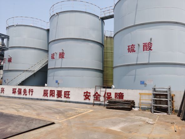 辰陽化工于2019年08月28日取得衢州市應(yīng)急管理局核發(fā)的危險化學(xué)品經(jīng)營許可證(有效期至2022年08月27日),證書編號:衢應(yīng)急經(jīng)(龍)字2019000010號,許可經(jīng)營范圍:帶儲存經(jīng)營鹽酸(液體儲量3000噸)、硫酸(液體儲量1550噸)、液堿(液體儲量900噸),共計3種;無倉儲經(jīng)營氫氧化鈉、氨溶液[含氨>10%]、次氯酸鈉溶液[含有效氯>5%]、1,2-二甲苯、1,3-二甲苯、1,4-二甲苯、二甲苯異構(gòu)混合液、氟化氫[無水]、氫氟酸、環(huán)己酮、環(huán)己烷、三氯甲烷、四氯乙烯、1,1,2,2-四氯乙烷、1,1-二氯乙烯、1,2-二氯乙烯、三氯乙醛[穩(wěn)定的]、環(huán)氧樹脂、乙酸乙酯、甲醇、乙醇[無水]、涂料用稀釋劑、甲醛溶液、甲酸、乙酸[含量>80%]、乙酸溶液[10%<含量≤80%]、磷酸、碳酸鋰、氫氧化鋰、氯化鈣;易制爆:過氧化氫溶液[含量>8%]、硝酸、六亞甲基四胺,共計33種(其中碳酸鋰、氯化鈣為非危險化學(xué)品)。經(jīng)營儲存場所位于廠區(qū)北側(cè),包括1座戊類罐區(qū)(1個500m3液堿罐、2個500m3硫酸罐和6個500m3鹽酸罐)、1座裝卸車臺及輔助車間1F(包裝間)。